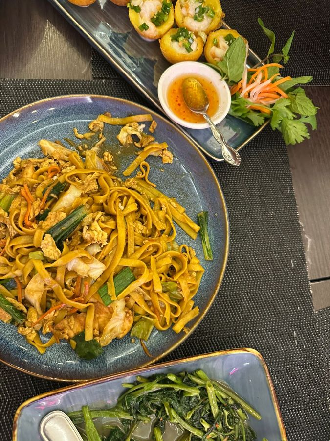 가장 먼저 맛본 것은 베트남을 대표하는 국민 음식, 포(Pho)였다. 따뜻한 국물에서 피어오르는 향긋한 허브 향은 마치 베트남 현지에 와있는 듯한 착각을 불러일으켰다. 한 모금 맛보는 순간, 깊고 진한 육수의 풍미가 입안 가득 퍼져 나갔다. 부드러운 쌀국수 면과 신선한 야채, 그리고 푸짐하게 들어간 고기는 완벽한 조화를 이루며 잊을 수 없는 맛을 선사했다. 마치 베트남 여행의 아름다운 추억이 되살아나는 듯한 기분이었다. 양도 푸짐해서 한 그릇을 다 비우니 배가 든든했다.