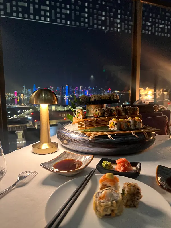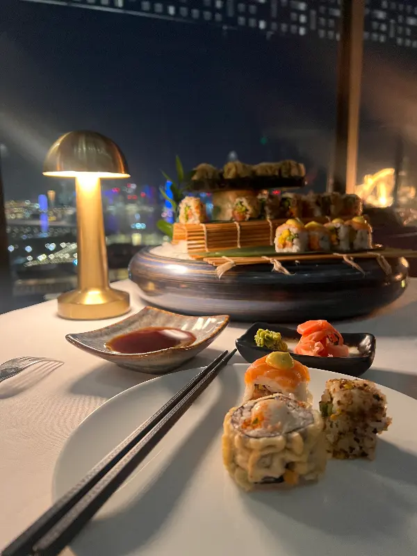 파크 하얏트 도하에서의 특별한 경험 중 하나는 바로 소라 루프탑에서의 저녁 식사였습니다. 생일 파티를 위해 방문했던 이곳은 기대 이상의 환상적인 분위기를 자랑했습니다. 탁 트인 공간에서 바라보는 도하 시내의 야경은 그야말로 압권이었고, 은은한 조명과 아름다운 음악은 로맨틱한 분위기를 더했습니다.
