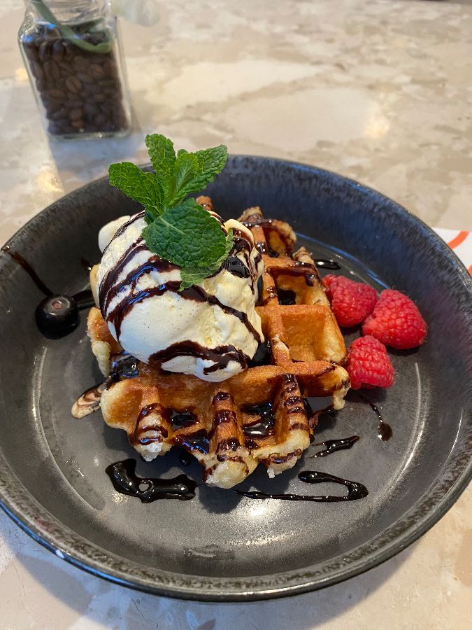 식사의 마지막은 역시 달콤한 디저트가 장식해야 완벽하겠죠? ONE Nation Munich의 디저트 메뉴 역시 기대를 저버리지 않습니다. 특히 바나나 브레드는 이곳을 방문한 많은 이들이 강력 추천하는 메뉴입니다. 촉촉하고 부드러운 식감과 바나나 특유의 달콤함이 어우러져, 커피나 차와 함께 즐기기에 더할 나위 없이 좋습니다. 또한, 따뜻하게 구워낸 황금빛 와플 위에 차가운 바닐라 아이스크림 한 스쿱, 그리고 신선한 라즈베리와 달콤한 초콜릿 소스가 어우러진 디저트는 보는 것만으로도 행복해지는 비주얼을 자랑합니다. 한 입 베어 물면 바삭한 와플과 부드러운 아이스크림, 그리고 새콤달콤한 베리의 조화가 입안 가득 퍼지며, 식사의 완벽한 마침표를 찍어줍니다. 이 모든 메뉴들은 단순히 맛있는 것을 넘어, 정성스러운 프레젠테이션 덕분에 더욱 특별하게 느껴집니다.