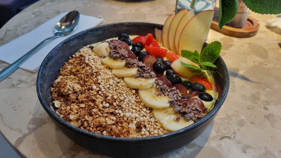 아침 식사나 가벼운 브런치를 찾는 이들에게는 단연 스무디 브리즈 볼이 최고의 선택입니다. 넉넉한 코코넛 볼에 담겨 나오는 스무디는 신선한 과일과 견과류, 곡물 토핑으로 가득 채워져 있습니다. 새콤달콤한 딸기, 부드러운 바나나, 상큼한 라즈베리, 그리고 고소한 그래놀라와 코코넛 플레이크가 겹겹이 쌓여 눈을 즐겁게 합니다. 한 숟가락 듬뿍 떠 입안에 넣으면, 차가운 스무디의 부드러움과 토핑의 다채로운 식감이 어우러져 활력을 샘솟게 합니다. 마치 열대 해변에서 맛보는 듯한 이국적인 상큼함은 독일에서 고기 위주 식단에 지쳤던 이들에게는 그야말로 ‘단비’ 같은 존재입니다. 스무디 볼 외에도, 신선한 아보카도가 듬뿍 올라간 토스트에 계란을 추가하거나, 부드러운 에그 베네딕트를 즐기는 것도 좋은 선택입니다. 이 메뉴들 역시 아침을 든든하게 시작하면서도 속을 편안하게 해주는 건강한 한 끼를 약속합니다.