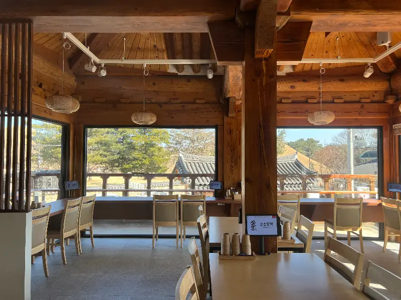 “소소함박”의 내부는 외부에서 풍기는 인상처럼 아늑하고 따뜻했습니다. 은은한 조명이 나무 테이블을 부드럽게 감싸고, 창밖으로는 천마총의 아름다운 풍경이 한눈에 들어왔습니다. 특히 창가 자리는 인기가 많아 서둘러 자리를 잡았습니다. 고즈넉한 한옥의 분위기 속에서 즐기는 식사는 특별한 경험이었습니다. 테이블 간 간격도 넓어 편안하게 식사에 집중할 수 있었고, 직원분들의 친절한 서비스 또한 인상적이었습니다. 2층은 주말에만 운영한다고 하니, 주말에 방문하시는 분들은 참고하시면 좋을 것 같습니다.