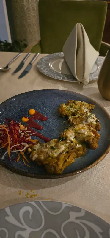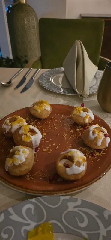 푸라니 딜리는 포 포인츠 쉐라톤 호텔 내에 위치해 있어 접근성이 뛰어납니다. 셰이크 자이드 로드가 한눈에 들어오는 멋진 뷰는 덤이지요. 발레파킹 서비스 덕분에 편안하게 식사를 즐길 수 있었습니다. 레스토랑에 들어서자마자 가장 먼저 눈에 들어오는 것은 바로 인테리어입니다. 고풍스러우면서도 현대적인 감각이 어우러진 공간은 마치 델리의 어느 고급 레스토랑에 와 있는 듯한 착각을 불러일으킵니다. 은은한 조명 아래, 테이블마다 놓인 촛불은 로맨틱한 분위기를 더합니다. 벽면에는 인도 전통 문양과 그림들이 걸려 있어 시각적인 즐거움 또한 놓치지 않았습니다. 친절한 직원들의 미소는 이곳을 더욱 특별하게 만들어주는 요소 중 하나입니다.