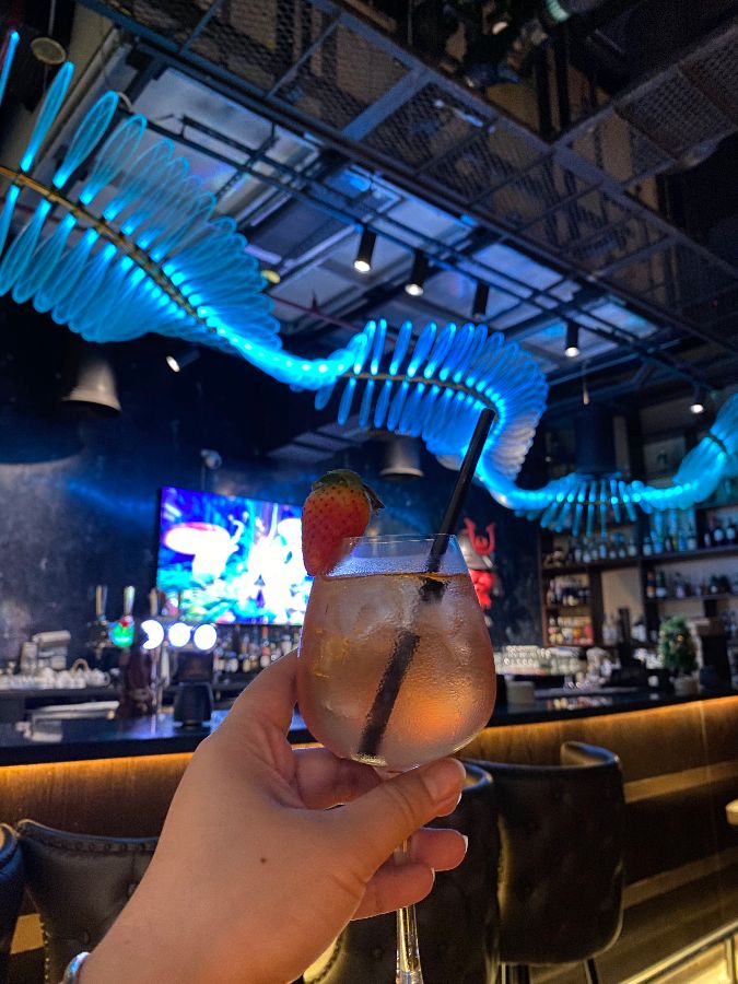 어둠 속에서도 선명하게 빛나는 푸른빛 조명과 천장의 독특한 조형물은 칸파이만의 감각적인 인테리어를 여실히 보여줍니다. 바 테이블에 앉아 시원한 칵테일을 홀짝이며 이국적인 분위기에 취하다 보면, 어느새 시간이 훌쩍 지나버리는 마법 같은 순간을 경험하게 될 것입니다. 이곳은 단순한 식당을 넘어, 일상의 지루함을 벗어나 새로운 활력을 얻을 수 있는 문화 공간과도 같습니다.
