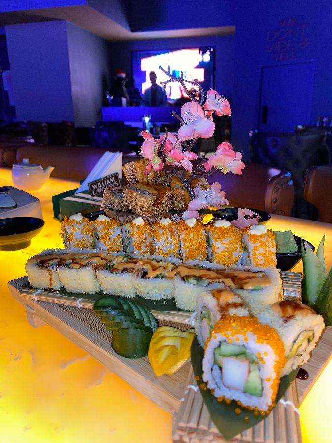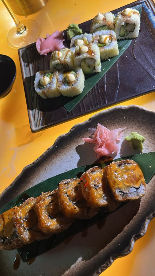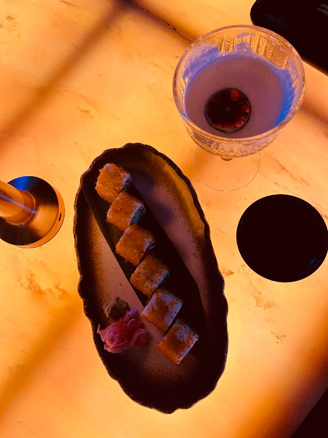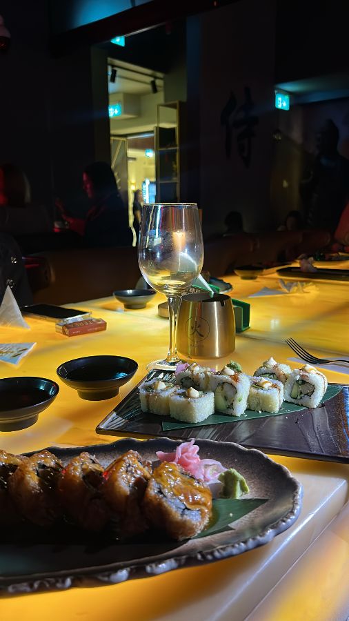 어두운 실내에서 노란색 조명 아래 놓인 테이블은 다양한 스시와 칵테일로 가득하며, 활기찬 분위기 속에서도 아늑함을 잃지 않습니다. 이곳에서라면 맛있는 음식과 즐거운 대화, 그리고 특별한 추억을 동시에 경험할 수 있습니다. 두바이에서 가장 특별한 맛집을 찾는다면 칸파이가 정답입니다.