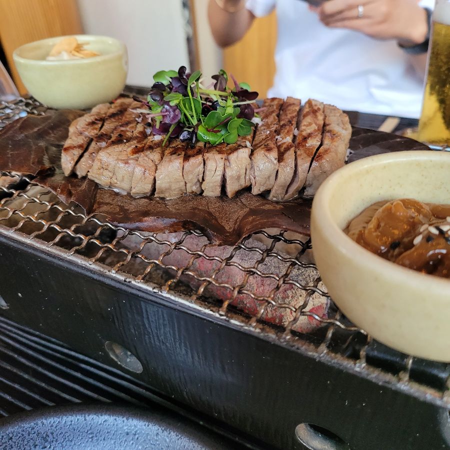 불판 위에서 지글지글 구워지는 스테이크는 육즙 가득한 비주얼과 완벽한 굽기로 보는 이의 침샘을 자극합니다. 겉은 바삭하고 속은 촉촉한 스테이크는 입안에서 사르르 녹아내리며 깊은 풍미를 선사합니다. 곁들여진 소스와 채소는 스테이크의 맛을 더욱 풍성하게 만들어주며, 일식뿐만 아니라 다양한 메뉴에도 뛰어난 실력을 보여주는 칸파이의 역량을 엿볼 수 있습니다.