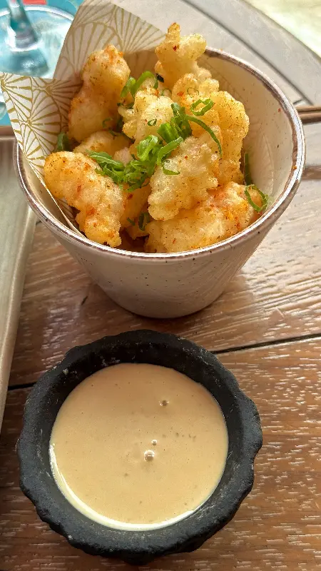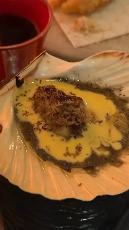 애피타이저로 나온 요리는 신선한 해산물을 사용한 요리였습니다. 플레이팅부터 예술 작품을 연상시킬 정도로 아름다웠습니다. 윤기가 흐르는 붉은 빛깔의 랍스터, 튀김옷을 입은 해산물, 싱그러운 허브, 그리고 상큼한 레몬 조각이 조화롭게 어우러져 있었습니다. 랍스터 살은 입안에서 부드럽게 녹아내렸고, 튀김은 바삭하면서도 고소했습니다. 신선한 재료 본연의 맛을 살린 섬세한 조리가 돋보였습니다. 곁들여 나온 소스는 랍스터의 풍미를 더욱 깊게 만들어주었습니다.