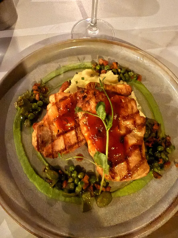 연어 스테이크: 신선한 연어를 사용하여 만든 연어 스테이크는 부드러운 식감과 함께 입안 가득 퍼지는 풍미가 일품입니다. 연어 특유의 기름진 맛을 싫어하는 사람도 부담 없이 즐길 수 있습니다. 이미지1처럼, 연어 스테이크는 구운 야채와 함께 제공되어 더욱 건강하고 맛있는 한 끼 식사를 즐길 수 있습니다.
