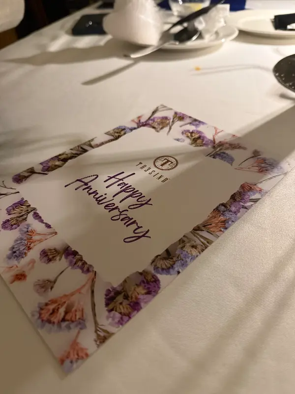 트레신드는 특별한 날을 기념하기에 완벽한 장소입니다. 기념일을 맞아 방문한 고객은 트레신드의 음식, 서비스, 분위기에 감동하며 잊지 못할 추억을 만들 수 있습니다. 레스토랑은 기념일을 더욱 특별하게 만들어주기 위해 세심한 노력을 기울입니다. 테이블 세팅부터 특별한 디저트까지, 모든 것이 완벽하게 준비되어 있습니다. 한 고객은 조카의 70번째 생일 파티를 트레신드에서 열었는데, 가족과 친구들과 함께 4시간 동안 테이스팅 메뉴와 와인을 즐기며 풍성한 미식 축제를 만끽했습니다.