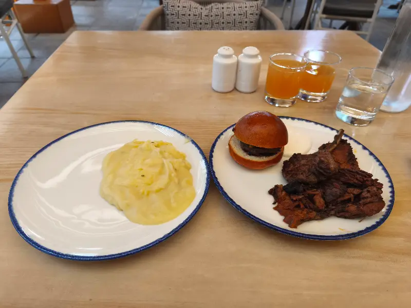 Village Bistro는 다양한 메뉴를 제공하여 방문객들에게 폭넓은 선택지를 제공합니다. 과거에는 세트 메뉴를 제공했으나, 현재는 매일 다른 테마의 뷔페를 운영하여 더욱 풍성하고 다채로운 미식 경험을 선사합니다. 뷔페에서는 훌륭한 브리스킷, 양갈비, 드라이 슬라이더, 맛있는 룰라 케밥 등 다양한 육류 요리와 함께 으깬 감자, 완두콩, 양배추, 구운 감자와 같은 사이드 메뉴를 즐길 수 있습니다.