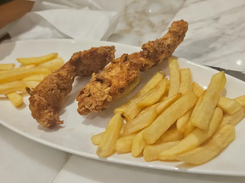 메뉴판을 펼쳐 들고 고민 끝에 선택한 메뉴는 라 부셰리의 대표 메뉴 중 하나인 크리스피 치킨 핑거였습니다. 튀김옷의 바삭함과 촉촉한 닭고기의 조화는 입안 가득 행복을 선사했습니다. 겉은 바삭하고 속은 촉촉한, 완벽한 튀김의 정석을 보여주는 듯했습니다. 함께 제공된 소스 또한 치킨 핑거의 풍미를 한층 더 끌어올리는 역할을 했습니다. 한 입 베어 무는 순간, “정말 최고”라는 감탄사가 절로 나왔습니다.