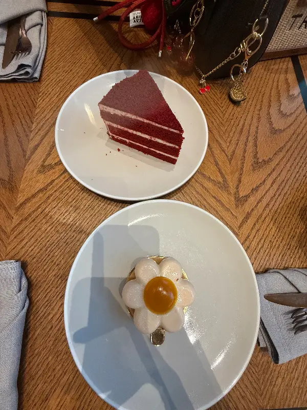 레드벨벳 케이크는 부드러운 시트 사이사이에 크림 치즈 프로스팅이 듬뿍 발라져 있어, 입안에서 사르르 녹아내리는 듯했다. 촉촉하면서도 묵직한 식감, 그리고 은은하게 퍼지는 초콜릿 향은 잊을 수 없는 맛이었다. 코코넛 망고 케이크는 상큼함의 극치였다. 달콤한 망고와 코코넛의 조화는 환상적이었고, 입안 가득 퍼지는 열대 과일의 향기는 마치 휴양지에 온 듯한 기분을 선사했다.