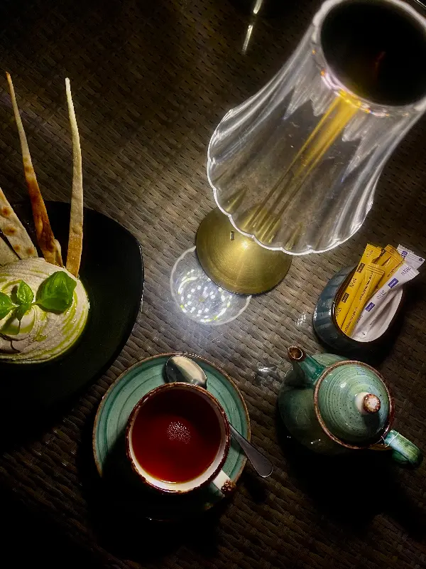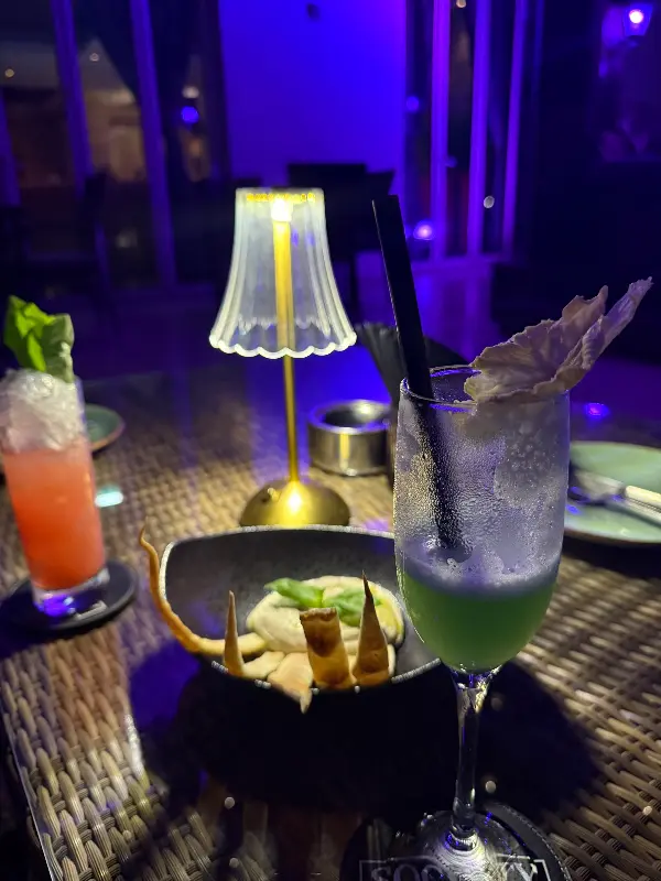 사진(Image 3)에서처럼, 테이블 위에는 은은한 램프가 놓여 있어 더욱 아늑한 분위기를 연출했다. 맛있는 음식과 칵테일, 그리고 아름다운 분위기 속에서 시간 가는 줄 모르고 즐거운 시간을 보냈다.