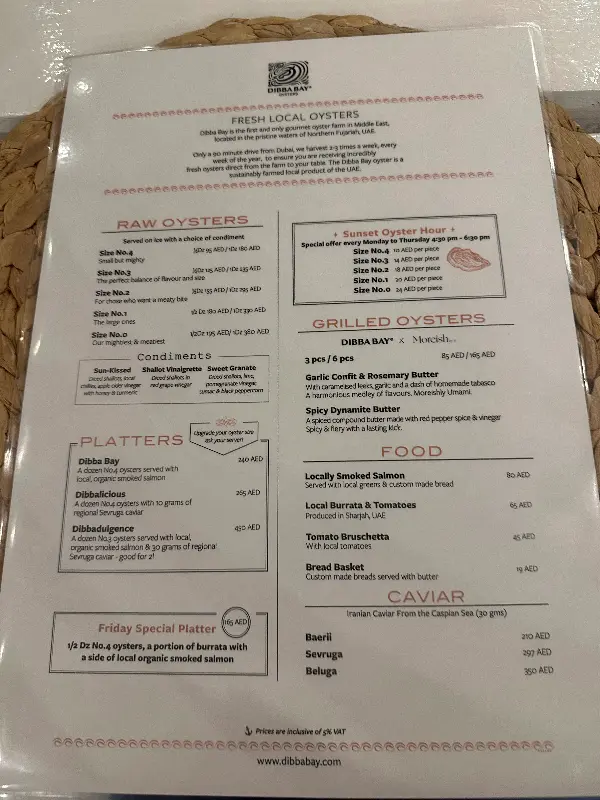 디바 베이 오이스터는 훌륭한 맛뿐만 아니라, 합리적인 가격 또한 매력적입니다. 240 AED에 1등 굴 12개를 저렴하게 판매하고 있으며, 이는 두바이에서 최고급 현지 굴을 맛볼 수 있는 최고의 기회입니다. 신선하고 크고 살이 꽉 찬 굴을 부담 없이 즐길 수 있다는 점이 이곳의 가장 큰 장점 중 하나입니다.