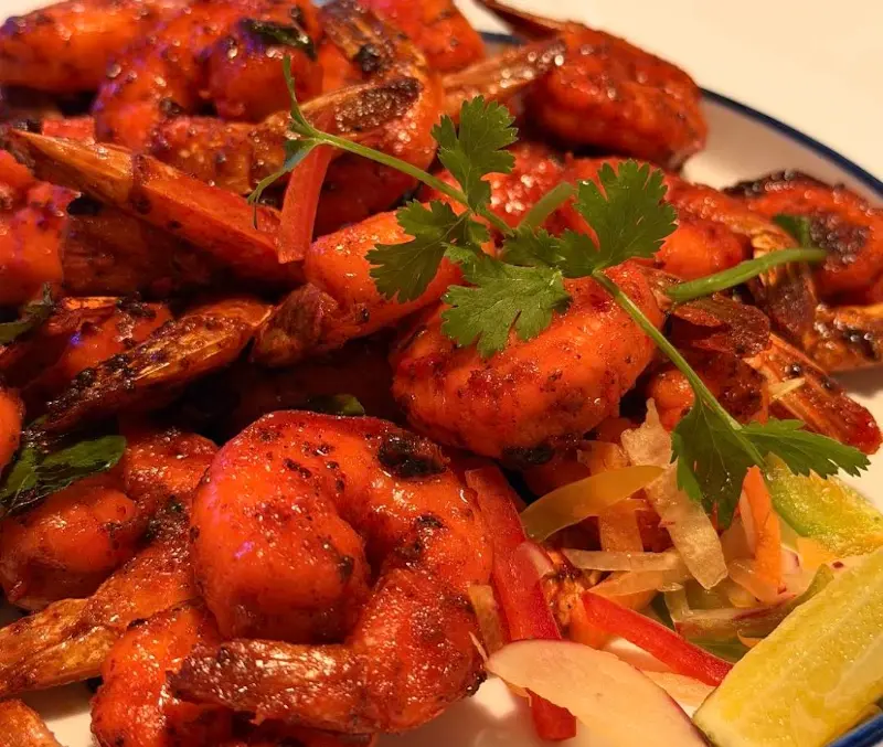 함께 주문한 새우 타와 역시 훌륭했다. 타와는 인도식 철판 요리를 의미하는데, 새우를 각종 향신료와 함께 철판에 구워낸 요리였다. 겉은 바삭하고 속은 촉촉한 새우는 매콤하면서도 깊은 풍미를 자랑했다. 특히 함께 제공된 소스에 찍어 먹으니 더욱 맛있었다.