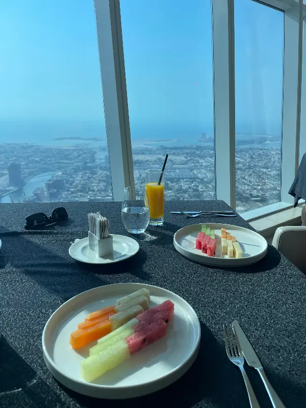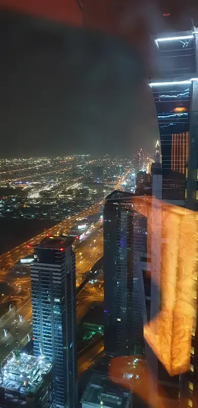 엘리베이터 문이 열리는 순간, 탄성이 절로 터져 나왔다. 68층 높이에서 펼쳐지는 두바이의 야경은 그야말로 장관이었다. 반짝이는 도시의 불빛들이 마치 보석처럼 흩뿌려져 있었고, 창밖으로는 두바이의 랜드마크들이 한눈에 들어왔다. 이곳이 왜 두바이 최고의 다이닝 뷰를 자랑하는 곳인지 단번에 이해할 수 있었다.