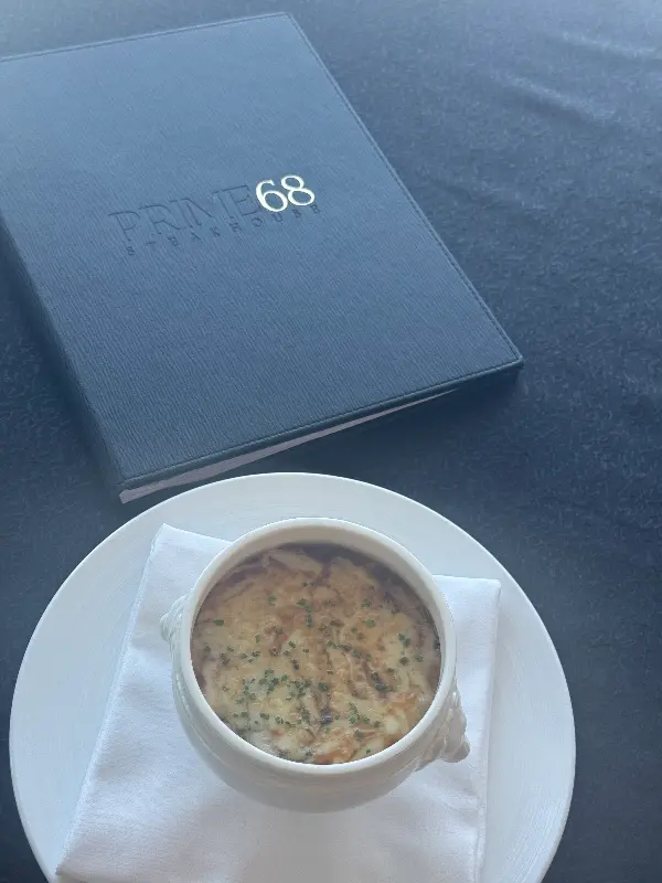 고심 끝에 프렌치 어니언 수프와 크랩 케이크를 애피타이저로, 메인으로는 이곳의 대표 메뉴인 스테이크를 주문했다. 잠시 후, 따뜻한 김을 모락모락 피워내는 프렌치 어니언 수프가 나왔다. 깊고 진한 육수와 부드러운 양파의 조화는 추위마저 녹여주는 듯했다.