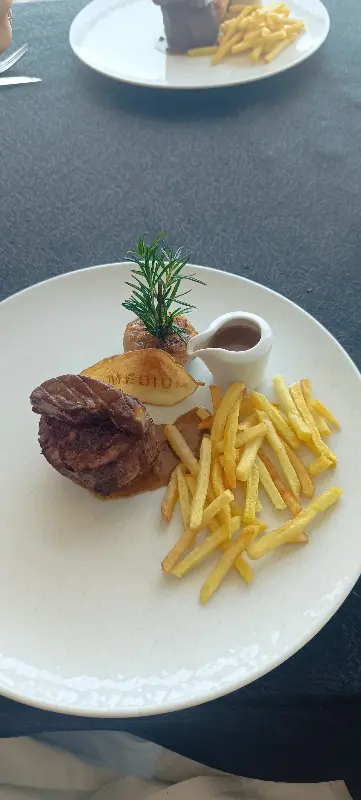드디어 기다리고 기다리던 스테이크가 등장했다. 완벽하게 구워진 스테이크는 육즙이 풍부했고, 입안에서 살살 녹는 듯한 부드러운 식감이 일품이었다. 최고급 AED급 재료를 사용한다는 설명처럼, 원재료의 품질은 의심할 여지가 없었다. 곁들여진 사이드 메뉴 또한 스테이크와 훌륭하게 어우러졌다. 특히 섬세하게 뿌려진 허브와 소스는 스테이크의 풍미를 한층 더 끌어올렸다.