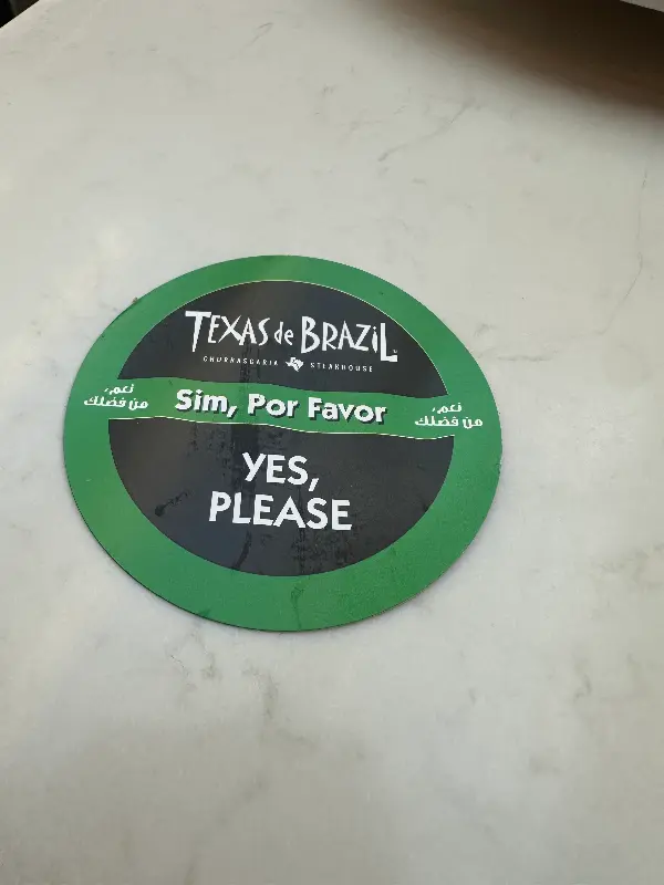 텍사스 데 브라질은 마치 고기 뷔페와 같은 곳이다. 서버들이 뜨겁게 구워진 다양한 부위의 고기를 들고 테이블을 돌며 즉석에서 썰어준다. “Sim, Por Favor(Yes, Please)”라고 적힌 초록색 면을 위로 향하게 놓으면, 숙련된 Gaucho(가우초)들이 쉴 새 없이 다가와 맛있는 고기를 접시에 채워준다.