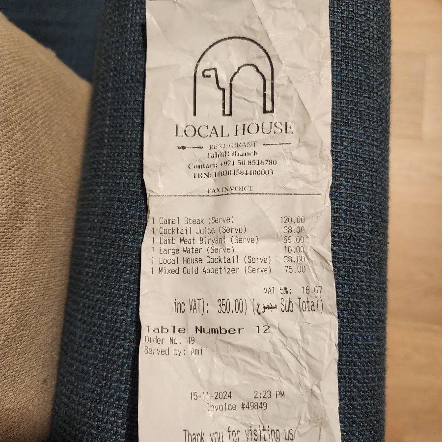 로컬 하우스 레스토랑은 단순히 중동 음식을 파는 곳이 아니라, 두바이의 문화와 미식을 동시에 경험할 수 있는 특별한 공간입니다. 이색적인 낙타 고기 요리부터 깊은 풍미의 머튼 브리야니까지, 모든 메뉴는 방문객들에게 새로운 맛의 지평을 열어주었습니다. 비록 결제 시스템과 음료의 양에서 약간의 아쉬움이 있었지만, 친절한 서비스와 고유한 분위기, 그리고 무엇보다 잊을 수 없는 맛은 이러한 작은 불편함을 상쇄하고도 남았습니다.