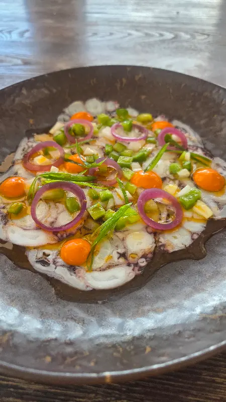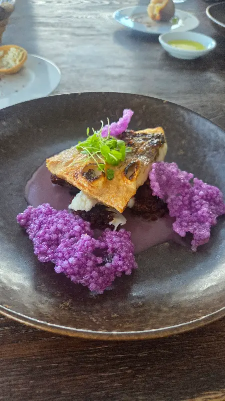 비눔 레스토랑에서는 굴, 고기, 아뮤즈 부쉬, 빵 등 다양한 메뉴를 맛볼 수 있습니다. 굴은 신선하고 맛있었고, 다른 요리들도 훌륭했지만, 포르투에 왔다면 해산물 요리를 더욱 추천합니다. 채식 메뉴도 준비되어 있어, 다양한 취향을 가진 사람들이 함께 즐길 수 있다는 점도 매력적입니다. 생일 저녁 식사를 위해 이곳을 예약했는데, 전반적으로 매우 만족스러웠습니다. 홈메이드 빵부터 음식 하나하나에 정성이 느껴졌고, 와인과의 궁합도 환상적이었습니다. 직원들의 친절하고 유쾌한 서비스 덕분에 더욱 즐거운 저녁 식사를 할 수 있었습니다. 디저트 또한 훌륭하여, 마지막까지 완벽한 마무리를 선사했습니다.
