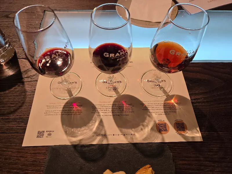 와이너리 투어 후, Vinum 레스토랑에서 LBV와 20년산 토니 포트 와인을 맛보았습니다. 그 중에서도 20년산 토니 포트 와인은, 다채로운 맛과 향이 말로 표현하기 힘들 정도로 인상적이었습니다. 이후 20년산 토니에 푹 빠져버렸을 정도입니다. 꼭 한 번 맛보시기를 추천합니다. 와인 투어에서 이미 와인을 세 잔쯤 시음한 후였지만, 이곳의 분위기와 뷰가 너무 좋아 와인을 한 잔 더 주문해 마셨습니다. 따뜻한 햇살 아래, 아름다운 풍경을 바라보며 마시는 와인은, 그 어떤 술보다도 달콤하게 느껴졌습니다.
