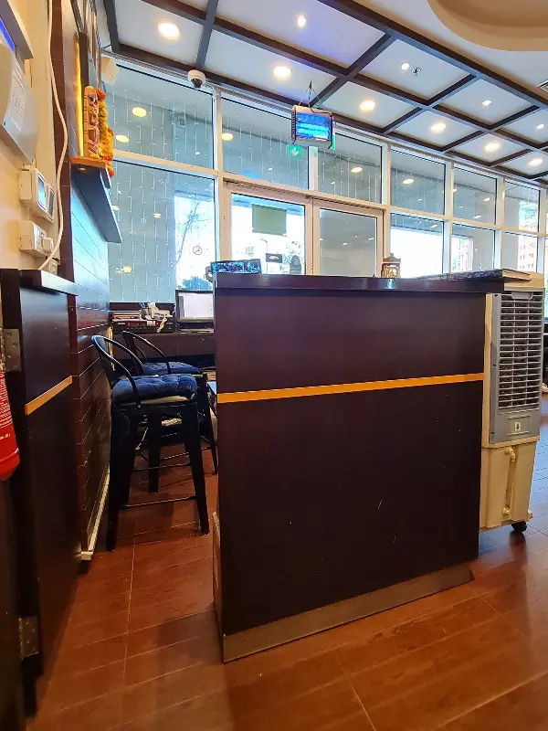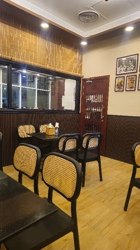 창밖으로 들어오는 부드러운 햇살과 은은한 조명이 어우러져 만들어내는 공간은 혼자만의 식사를 즐기기에도, 소중한 사람들과 함께 담소를 나누며 식사하기에도 완벽합니다. 나무 소재의 테이블과 의자는 따뜻하고 편안한 느낌을 더하며, 벽면에 걸린 사진들은 마치 인도 현지에 와 있는 듯한 기분을 선사합니다. 특히 라탄 소재로 짜여진 의자 등받이는 독특한 질감과 디자인으로 시선을 사로잡습니다.