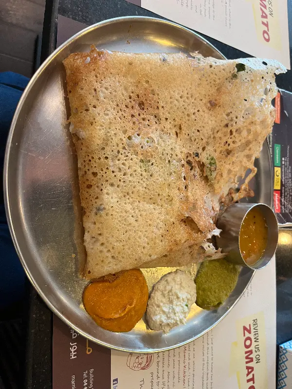 마미스 일람에서 도사를 빼놓을 수 없습니다. 얇고 바삭한 도사는 그 자체로도 훌륭하지만, 함께 제공되는 다양한 소스와 곁들여 먹으면 더욱 풍성한 맛을 느낄 수 있습니다.