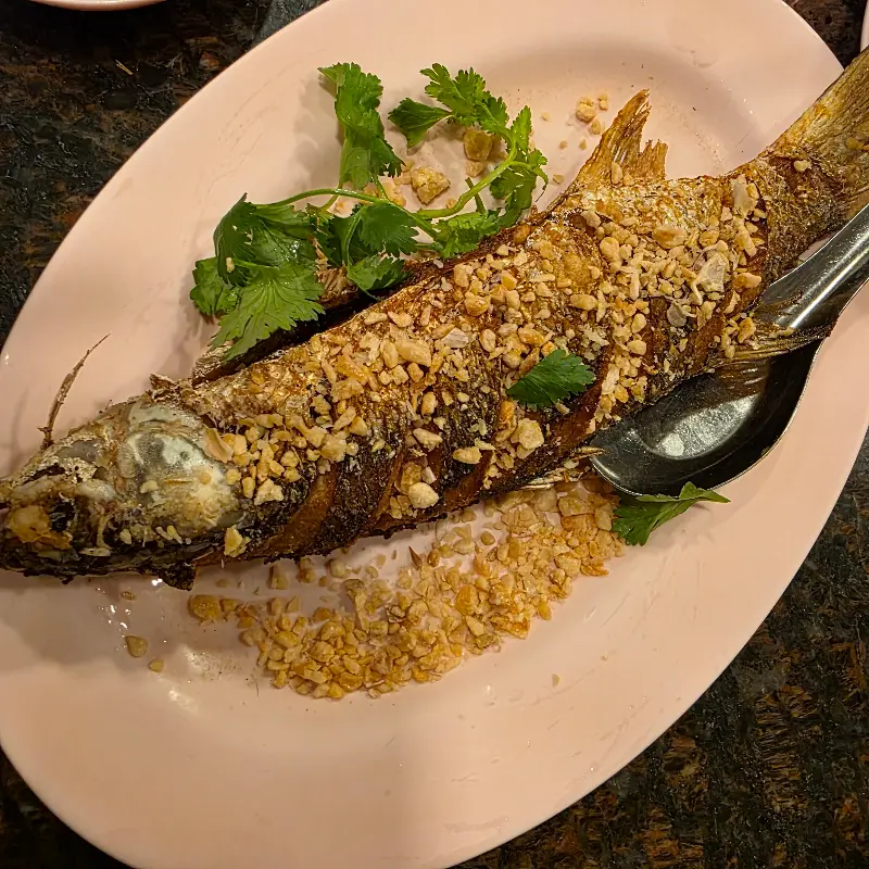 다음으로 맛본 메뉴는 생선튀김. 겉은 바삭하고 속은 촉촉한 튀김옷을 입은 생선은 젓가락을 대는 순간 부드럽게 찢어졌다. 담백한 생선 살은 입안에서 살살 녹았고, 짭조롬한 소스는 풍미를 더했다. 튀김 위에 뿌려진 다진 견과류는 고소한 맛과 함께 바삭한 식감을 선사하며 미각을 더욱 풍요롭게 만들었다.