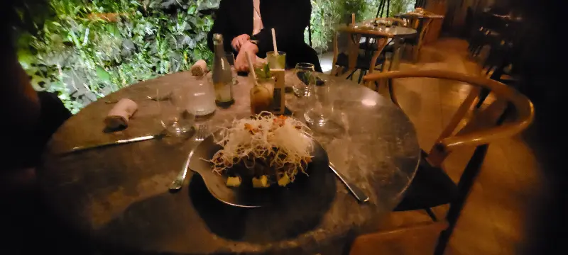 여행의 설렘을 안고 도착한 보고타, 마지막 밤을 특별하게 장식할 맛집을 찾아 나섰다. 여러 리뷰들을 꼼꼼히 살핀 후, 일본, 페루, 콜롬비아 요리의 독특한 융합을 선보이는 레스토랑 “Qun”을 선택했다. 문을 열고 들어서는 순간, 은은한 조명과 세련된 인테리어가 눈에 들어왔다. 어딘가 모르게 어두운 감은 있었지만, 테이블 간 간격이 넓어 아늑하고 편안한 분위기를 느낄 수 있었다.