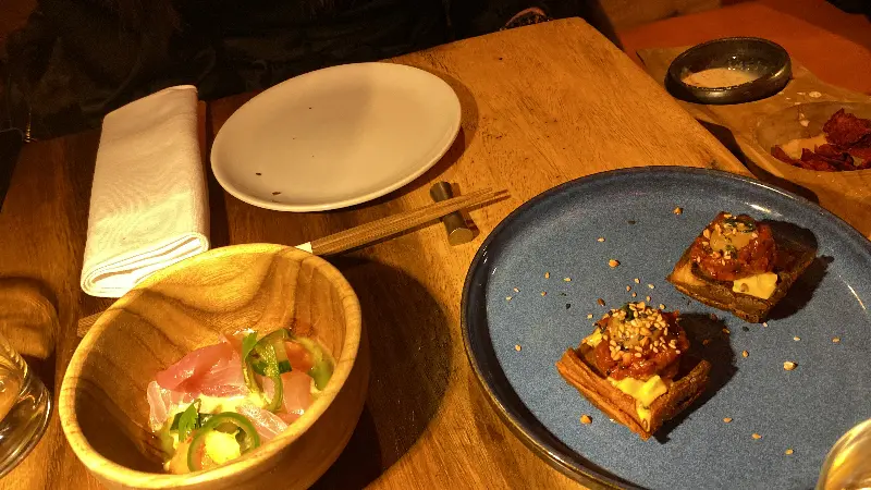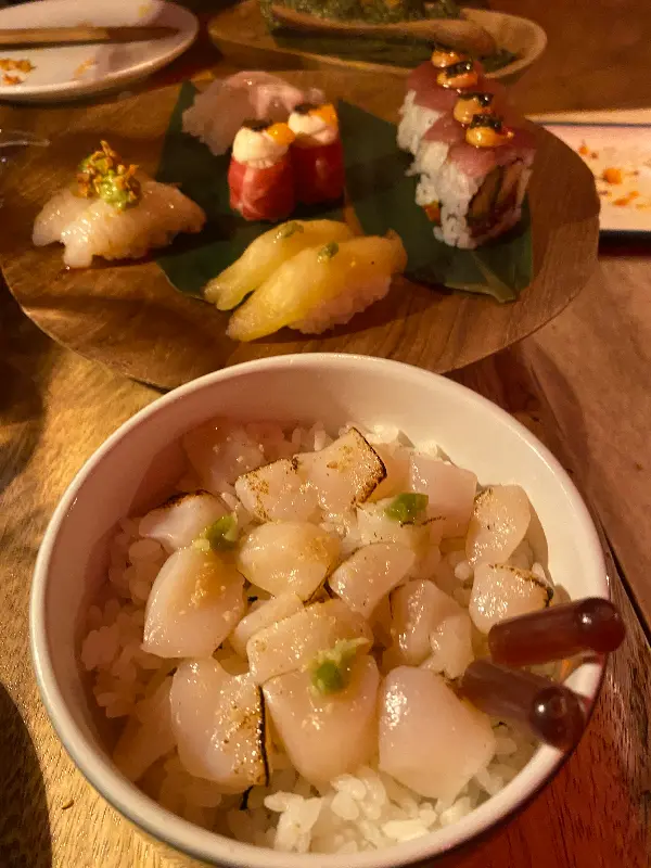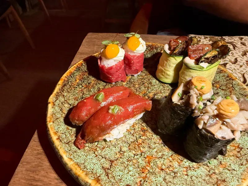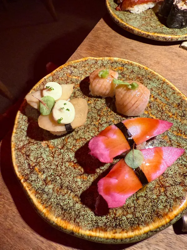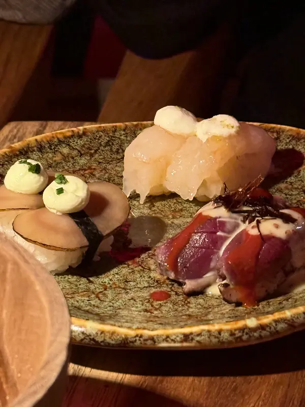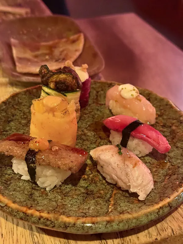 테이스팅 메뉴는 셰프가 엄선한 다양한 요리로 구성되어 있습니다. 시식 후에는 QR 코드를 스캔하여 원하는 스시를 무제한으로 즐길 수 있는 것도 큰 매력입니다. 가격은 일반적인 무제한 뷔페보다 조금 높은 편이지만, 음식의 퀄리티와 분위기를 고려하면 충분히 합리적인 가격입니다.
