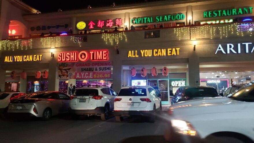 라스베가스의 밤거리를 걷다 보면, 화려한 네온사인과 수많은 인파에 정신이 팔리게 됩니다. 하지만 스시타임은 조금 다른 분위기로 다가옵니다. 가게 앞을 밝히는 은은한 조명과 “ALL YOU CAN EAT”이라는 문구는, 이곳이 맛있는 음식을 마음껏 즐길 수 있는 곳임을 암시합니다.