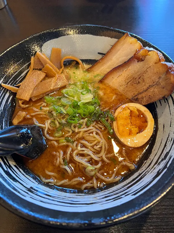 국물부터 한 모금 맛보았다. 진한 돼지 육수의 풍미가 입안 가득 퍼져 나갔다. 흑마늘 오일은 고소하면서도 쌉쌀한 맛을 더해, 라멘의 풍미를 한층 깊게 만들었다. 쫄깃한 면발은 육수를 듬뿍 머금어 환상적인 조화를 이루었다. 부드러운 차슈는 입에 넣는 순간 사르르 녹아내렸다. 반숙 계란은 촉촉하고 고소했다.