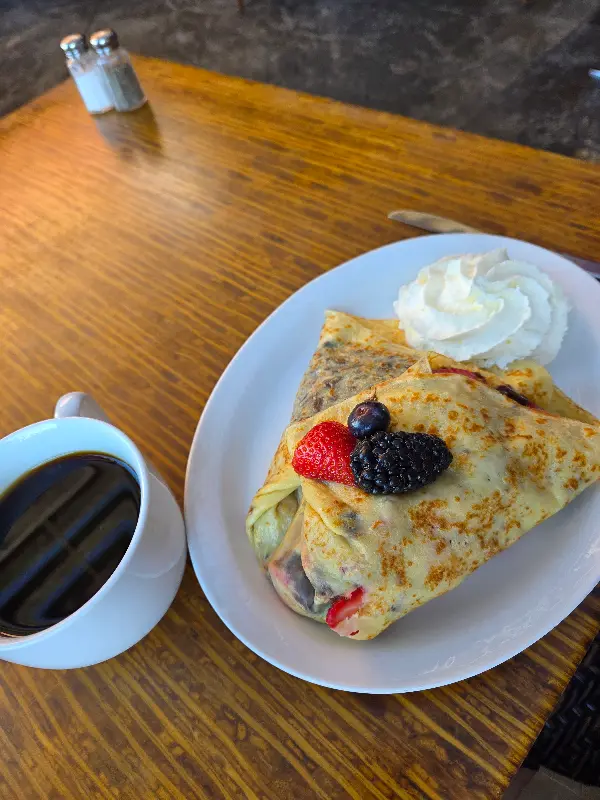 작지만 아늑한 크레페 익스펙테이션스에서는 놀라울 정도로 친절하고 빠른 서비스를 경험할 수 있었습니다. 카르네 아사다와 베리즈 누텔라 크레페를 주문했는데, 속이 꽉 차 있고 정말 맛있었습니다. 양이 너무 많아서 다 먹을 수 없을 정도였지만, 남편은 아무 문제 없이 깨끗하게 비웠습니다. 선택할 메뉴가 너무 많아서 다음 방문이 벌써부터 기대됩니다.