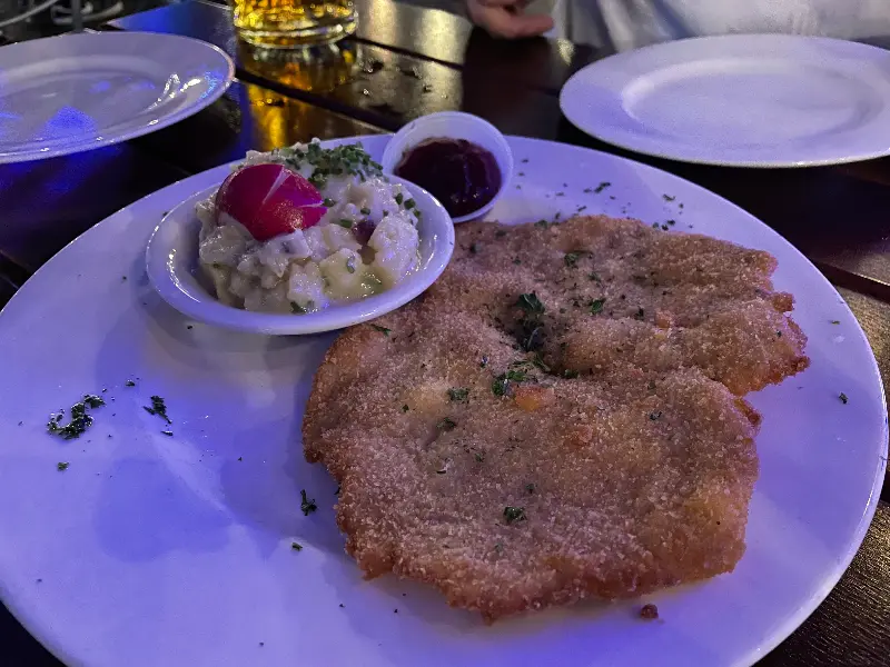 슈니첼은 부드럽고 양념이 잘 되어 있으며 소스도 훌륭하다는 평을 받고 있습니다. 특히 적양배추 볶음은 많은 방문객들이 극찬하는 메뉴입니다. 다만, 닭고기 소시지는 식감과 맛이 아쉽다는 의견도 있습니다. 다양한 메뉴를 맛보고 싶다면 샘플러 플래터를 추천합니다.