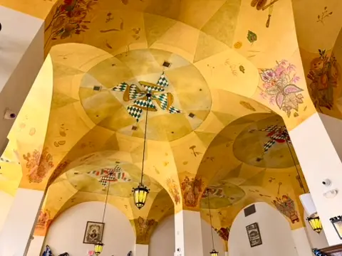 호프브로이하우스에 들어서면 가장 먼저 눈에 띄는 것은 웅장한 규모와 화려한 장식입니다. 천장에는 뮌헨을 상징하는 문양이 가득하고, 벽에는 독일 전통 의상을 입은 사람들의 그림이 걸려 있습니다. 테이블은 나무로 만들어져 묵직하고 튼튼하며, 맥주를 마시는 사람들의 웃음소리와 밴드의 흥겨운 연주가 끊이지 않습니다. 약간 정신없을 수도 있지만, 이 모든 것이 호프브로이하우스만의 매력입니다.