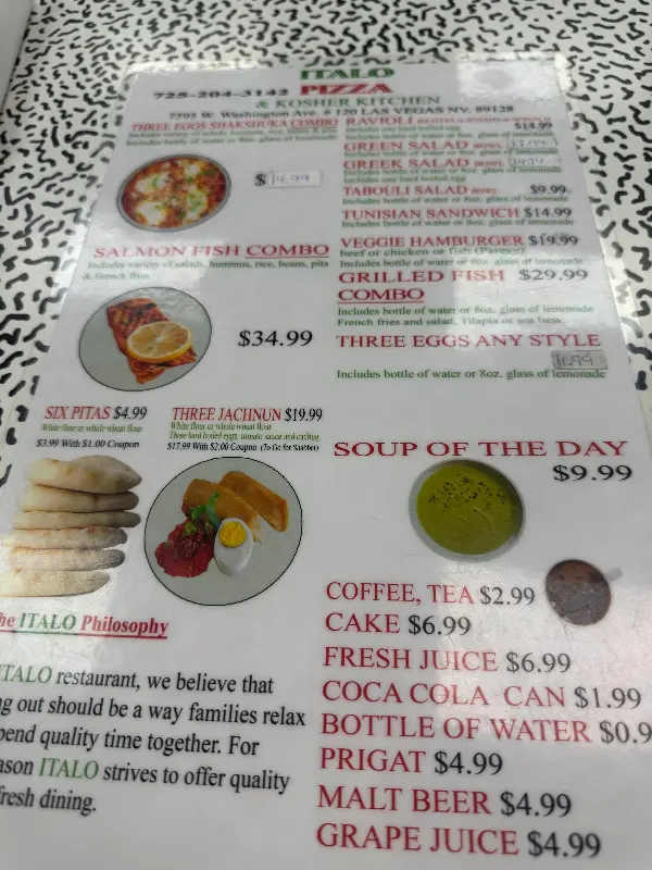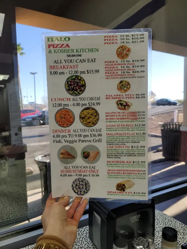 Italo Pizza & Kosher Kitchen은 완벽한 식당은 아닐지도 모릅니다. 하지만 따뜻한 환대, 정성 가득한 음식, 그리고 진심으로 소통하려는 노력이 있는 특별한 공간입니다. 라스베이거스 여행 중 화려함에 지쳐 잠시 쉬어가고 싶을 때, 혹은 따뜻한 가정식 밥상이 그리울 때, Italo Pizza & Kosher Kitchen은 훌륭한 선택이 될 것입니다. 이곳에서 맛있는 음식을 즐기며, 정겹고 따뜻한 추억을 만들어 보세요. 마치 오랜 친구 집에 방문한 듯 편안하고 행복한 시간을 보낼 수 있을 것입니다.
