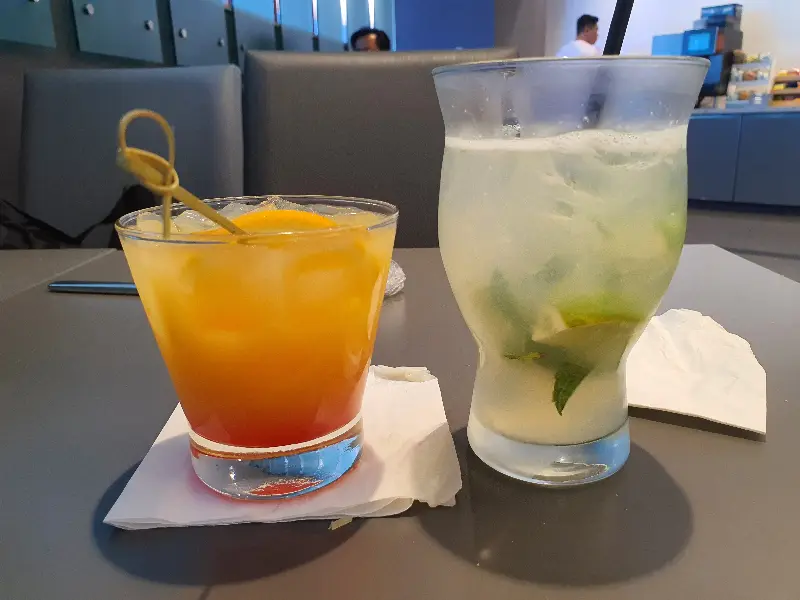 라운지에서 제공되는 칵테일. 상큼한 오렌지 빛깔이 눈길을 사로잡습니다. 라임과 민트가 들어간 시원한 음료는 갈증 해소에 제격입니다.