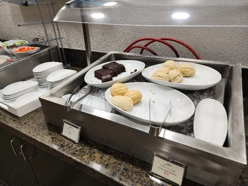 라운지 스낵바의 모습. 브라우니와 쿠키, 빵 등 다양한 스낵이 준비되어 있습니다. 간단한 간식으로 허기를 달랠 수 있습니다.
