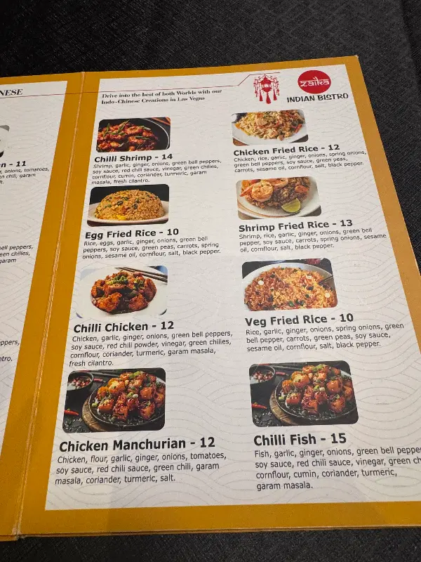메뉴판을 자세히 살펴보니 인도 요리 외에도 칠리 쉬림프, 치킨 볶음밥 등 인도차이나 요리도 준비되어 있었습니다. 다양한 선택지 앞에서 고민했지만, 결국 Zaika Indian Bistro의 대표 메뉴인 염소 카레와 탄두리 치킨을 주문했습니다. 메뉴를 고르기 어려울 땐, 역시 대표 메뉴를 선택하는 것이 후회가 없을 것 같았습니다.