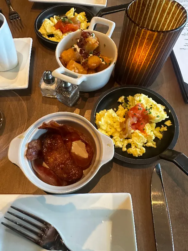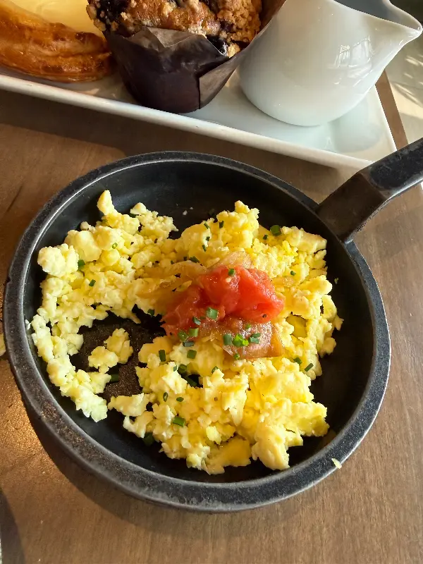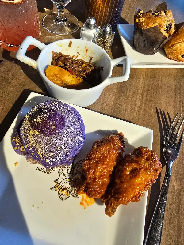 특히 인상 깊었던 메뉴는 쇼트립 해시였다. 부드럽게 찢어낸 소갈비살과 감자의 조화는 환상적이었고, 위에 얹어진 크림치즈는 풍미를 더했다. 또한, 우베 팬케이크는 가운데 크림치즈가 얹혀져 있었는데, 달콤하면서도 부드러운 맛이 일품이었다. 버섯 트러플 그리츠 역시 트러플 향이 은은하게 퍼지면서 깊은 풍미를 느낄 수 있었다.
