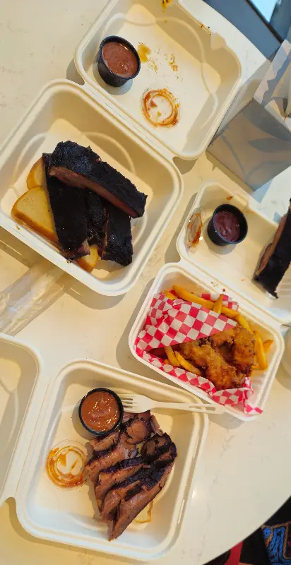 다음으로 향한 곳은 텍사스 바비큐 코너였습니다. 이곳의 가장 큰 장점은 엄청난 양이었습니다. 가격 대비 훌륭한 양은 여러 명이 함께 즐기기에 충분했습니다. 치킨 텐더와 감자튀김 또한 훌륭한 선택이었습니다. 특히, 큰 텐더 세 조각과 함께 제공되는 랜치 소스는 환상적인 조합을 자랑했습니다. 바비큐 브리스킷은 약간 건조했지만, 바비큐 소스를 듬뿍 찍어 먹으니 부족함 없이 맛있었습니다.