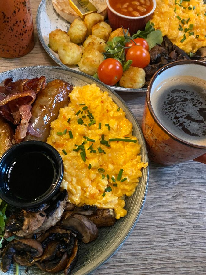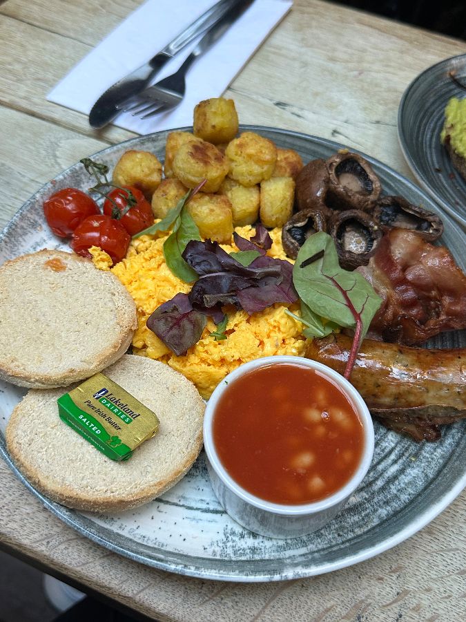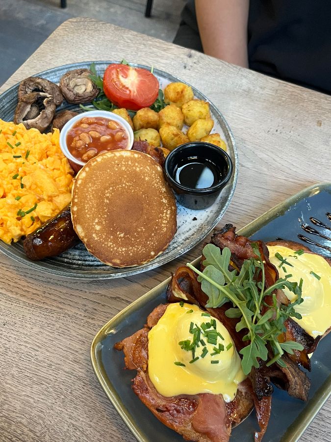 KOZZEE의 브런치는 정말이지 런던 여행 중 최고의 선택이었습니다. 메뉴 하나하나가 깔끔하고 건강한 맛을 자랑했고, 무엇보다 한국인 입맛에 딱 맞게 짜지 않아 아침 식사로 부담 없이 즐길 수 있었다는 점이 가장 인상 깊었습니다. 저는 풀 잉글리시 브렉퍼스트와 아메리칸 스타일 브렉퍼스트를 주문했는데, 두 메뉴 모두 빵 종류만 다르고 나머지 구성은 비슷했습니다. 잉글리시 머핀의 쫄깃함과 팬케이크의 부드러움이 각기 다른 매력을 뽐냈죠.