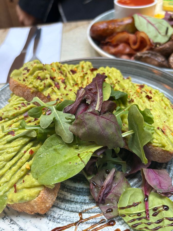 아보카도 토스트는 단순히 맛있는 것을 넘어, 런던에서의 바쁜 일상 속에서 잠시 멈춰 서서 몸과 마음에 건강한 에너지를 채워주는 듯했습니다. 특히 신선한 루꼴라와 붉은 빛 채소들이 곁들여져 더욱 풍성하고 다채로운 색감을 자랑했습니다.