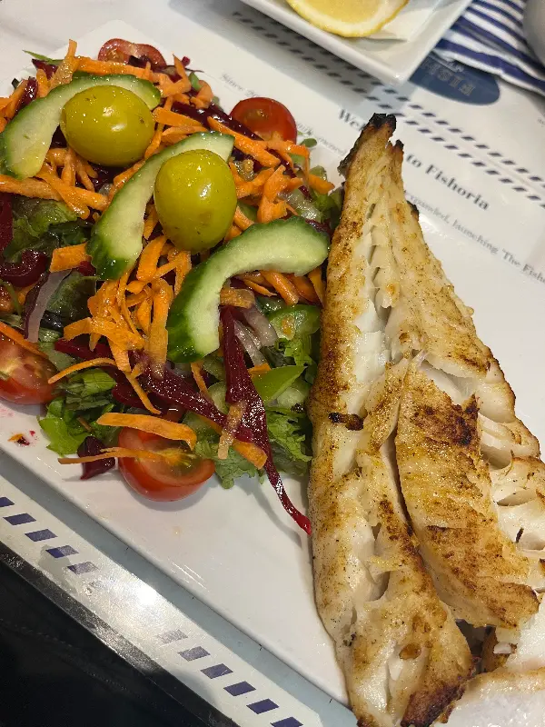 함께 주문한 Grilled fish, 그중에서도 Haddock(해덕)은 살짝 간을 해서 구운 생선요리였는데, 자극적이지 않고 담백한 맛이었습니다. 겉은 살짝 노릇하게 구워져 있었고, 속은 촉촉했습니다. 특히 함께 제공된 샐러드는 신선한 채소와 상큼한 드레싱이 어우러져 생선 요리와 환상적인 궁합을 자랑했습니다.
