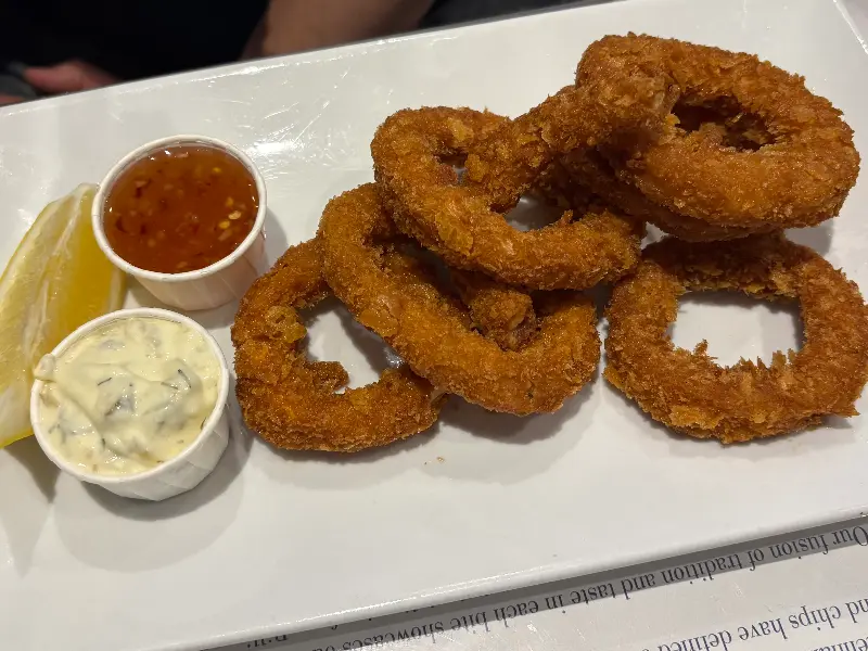 메뉴판을 펼쳐 들고 한참을 고민했습니다. 피쉬앤칩스는 당연히 시켜야 했고, 어떤 생선으로 할지, 튀김으로 할지 구이로 할지 결정해야 했습니다. 고민 끝에 우리는 스프 하나와 솔트 페퍼 오징어 튀김, 그리고 대구 피쉬앤칩스를 주문했습니다. 다양한 메뉴를 맛보고 싶은 마음에 Seafood basket (해산물 모듬 튀김)도 잠시 고민했지만, 양이 많을 것 같아 다음 기회로 미루었습니다.