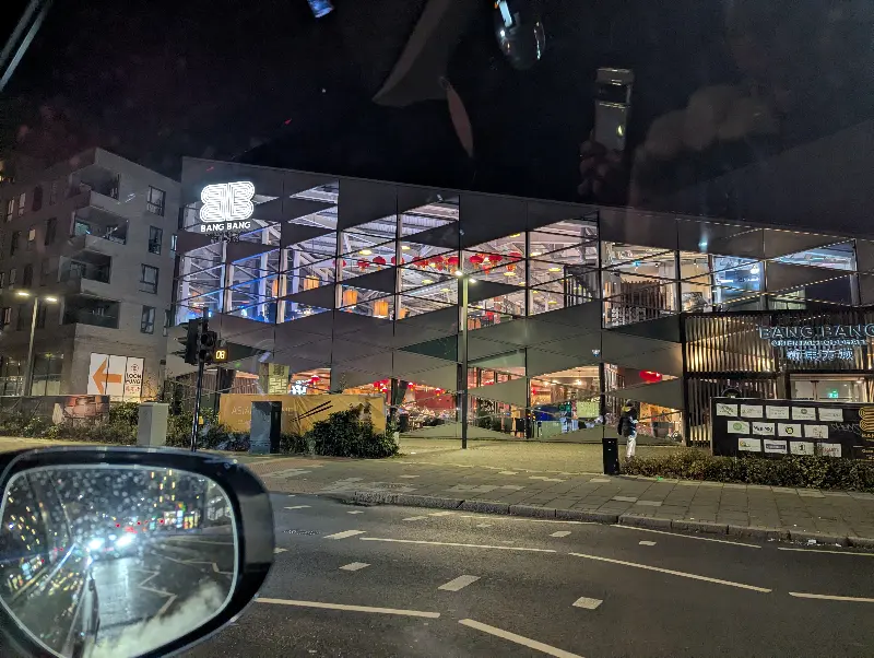 퇴근 후, 런던의 밤거리를 가로질러 뱅뱅 오리엔탈 푸드홀로 향하는 발걸음은 설렘으로 가득 찼다. 늦은 시간임에도 불구하고, 푸드홀의 외관은 화려한 조명으로 빛나고 있었다. 마치 보석 상자처럼 빛나는 모습은, 그 안에서 펼쳐질 미식 경험에 대한 기대를 한층 더 고조시켰다. 밤에도 빛나는 뱅뱅 오리엔탈 푸드홀의 웅장한 외관(Image 5)은 멀리서도 눈에 띄었고, 발길을 이끄는 강력한 힘을 지니고 있었다.