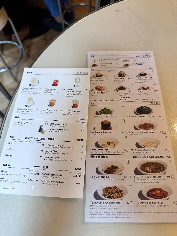 이곳의 메뉴는 바오뿐만 아니라, 다양한 대만 요리를 맛볼 수 있다는 장점이 있다. 40일 숙성 스테이크 라이스는 미슐랭 추천을 받을 정도로 유명하고, 버섯 만두는 신선하고 폭신한 식감이 일품이라고 한다. 프라이드 치킨은 맛있었지만, 다른 음식들은 괜찮은 정도였다는 평도 있었다.