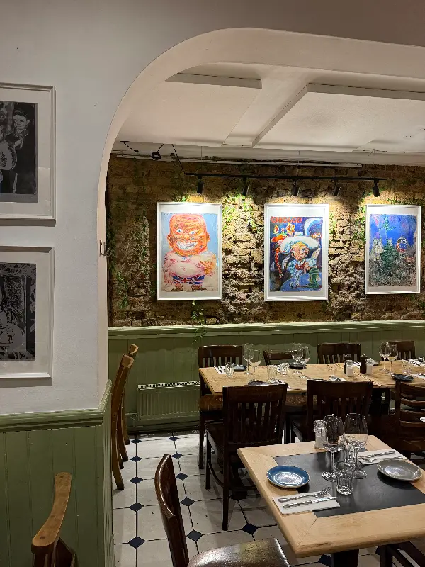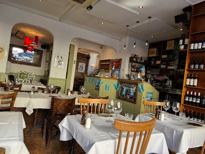 레스토랑 내부는 아르헨티나의 열정과 런던의 세련됨이 조화롭게 어우러진 공간이었다. 벽에는 개성 넘치는 예술 작품들이 걸려 있어 마치 갤러리에 온 듯한 느낌을 주었다. 은은한 조명 아래 테이블들은 저마다의 이야기를 나누는 사람들로 가득 차 있었고, 활기찬 분위기가 공간을 가득 채웠다.