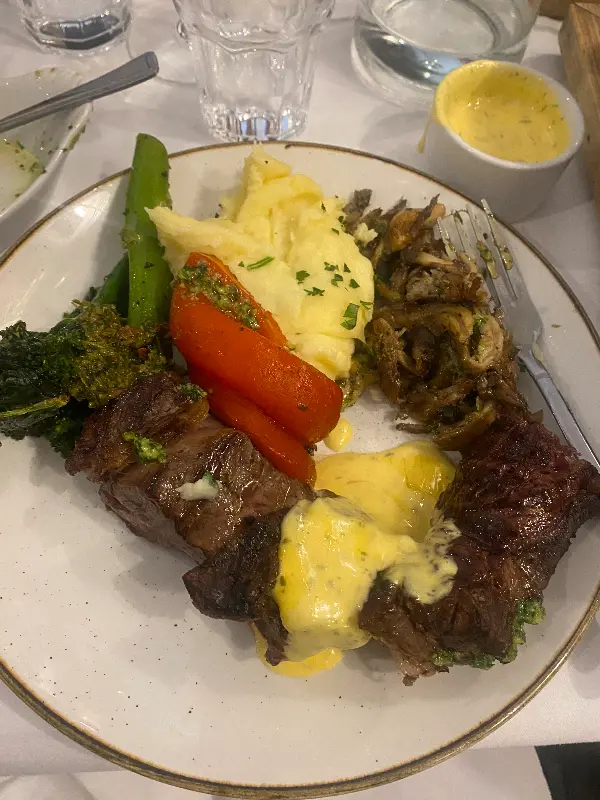 나 또한 립아이 스테이크를 주문했다. 완벽하게 구워진 스테이크는 겉은 바삭하고 속은 촉촉한 완벽한 조화를 이루었다. 한 입 베어 무는 순간, 풍부한 육즙이 입안 가득 퍼져 나갔고, 씹을수록 고소한 풍미가 느껴졌다.