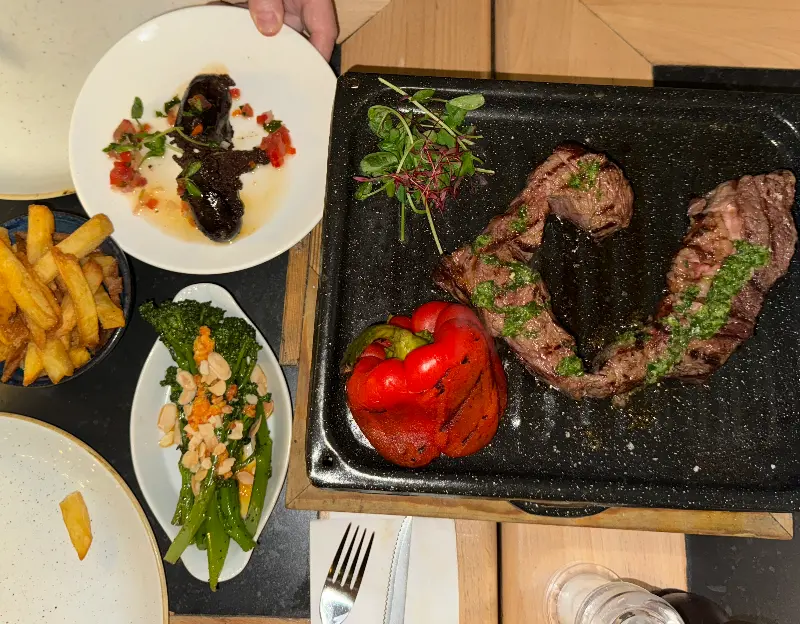미디엄 레어로 구워진 스테이크의 단면은 선홍빛을 띠고 있었고, 칼을 대는 순간 부드럽게 잘려 나갔다. 샐러드나 추가 메뉴가 포함되어 있지 않아 가격이 다소 비싸게 느껴질 수 있지만, 그만한 가치가 있다는 방문객들의 평가에 절로 고개가 끄덕여졌다. 함께 제공된 소스를 곁들이니, 스테이크의 풍미가 더욱 깊어졌다.